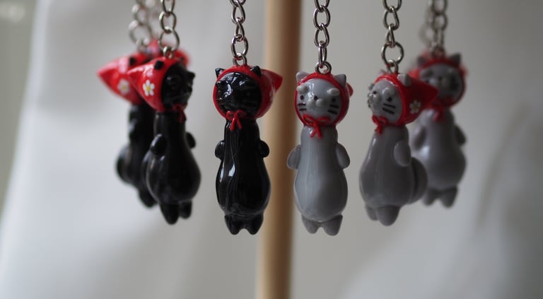 handmade babushka cat keychains